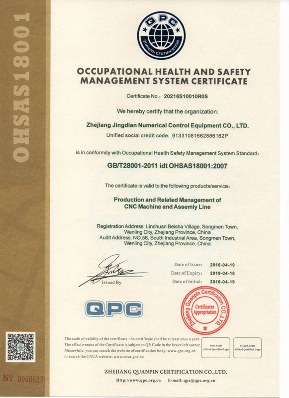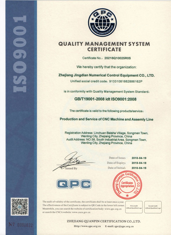 2007:La compañia cambió su nombre a Zhejiang Jingdian Numerical Control Equipment Co., Ltd.